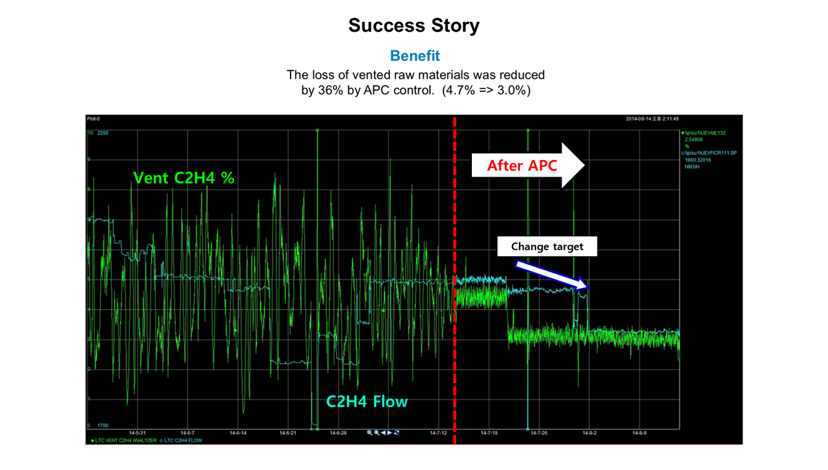 Benefit : The loss of vented raw materials was reduced by 36% by APC control. (4.7% => 3.0%)
